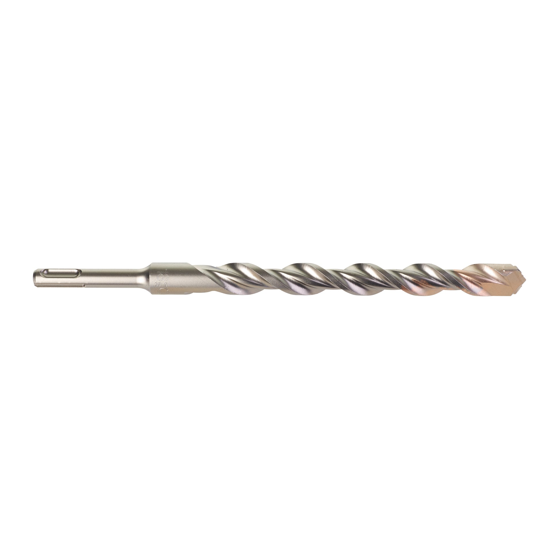 • Väčšie ochranné skosenie. Zabraňuje bočnému poškodeniu hrotu pri narazení na železné vystuženie betónu. Zabraňuje zaseknutiu vrtáka pri narazení na železo.